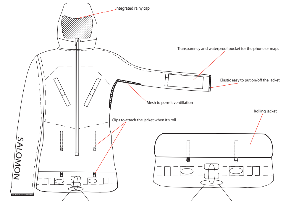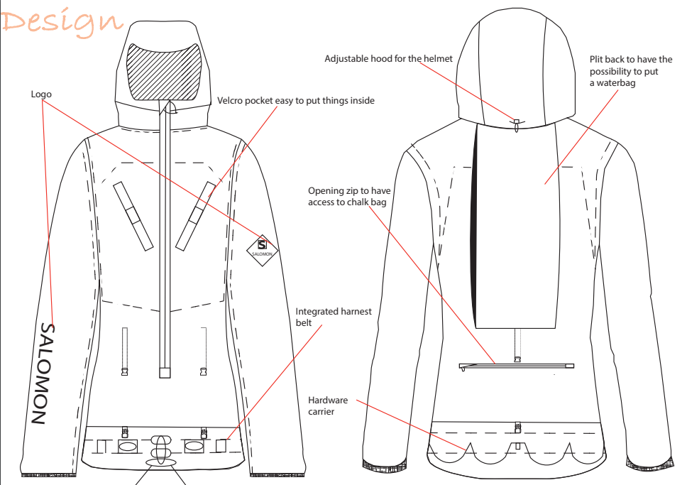 Le but de ce projet était de partir d'une veste existante sur le marché afin d'en créer une autre plus fonctionnelle et non persente sur le marché. J'ai donc décidé de créer une veste multifonctions pour les grimpeurs outdoor ou même les alpinistes. Cette veste est doté d'un baudrier intégré, d'un dos extensible afin de pouvoir porter son sac à dos sans soucis et d'une poche transparente pour le téléphone afin de voir facilement son topo. Elle peut également se rouler sur la taille lorsque vous n'en avez plus besoin.